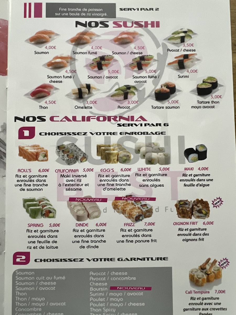 Sushi Best, nestled in the heart of Drancy, France, offers an exceptional fusion of Japanese and Thai flavors, perfect for sushi lovers and fast-food enthusiasts alike. This vibrant restaurant excels in delivering fresh, well-crafted sushi, alongside flavorful hot pot and Thai dishes, such as the highly praised Pad Thai with shrimp. The menu balances classic sushi rolls with inventive brochettes, notably the generous beef and cheese skewers that have delighted returning guests.